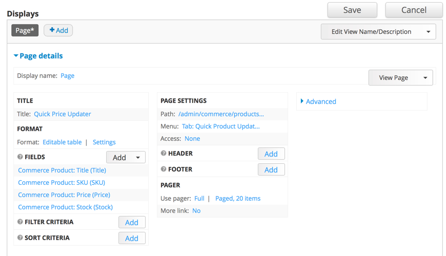 - Whenever you click "Save" on the Editable Views page, you will actually be saving everything on the page, regardless of whether or not you changed it. This could cause your site to drag considerably if you've got a lot of products and aren't paging the table.
